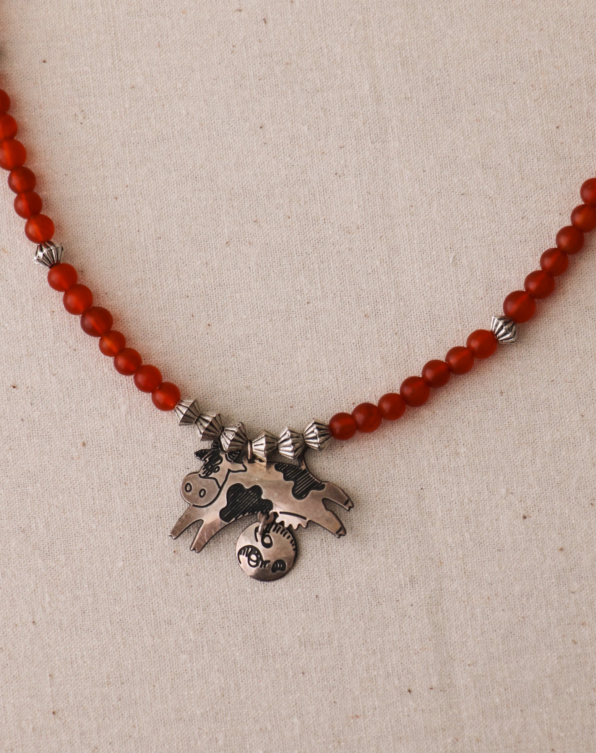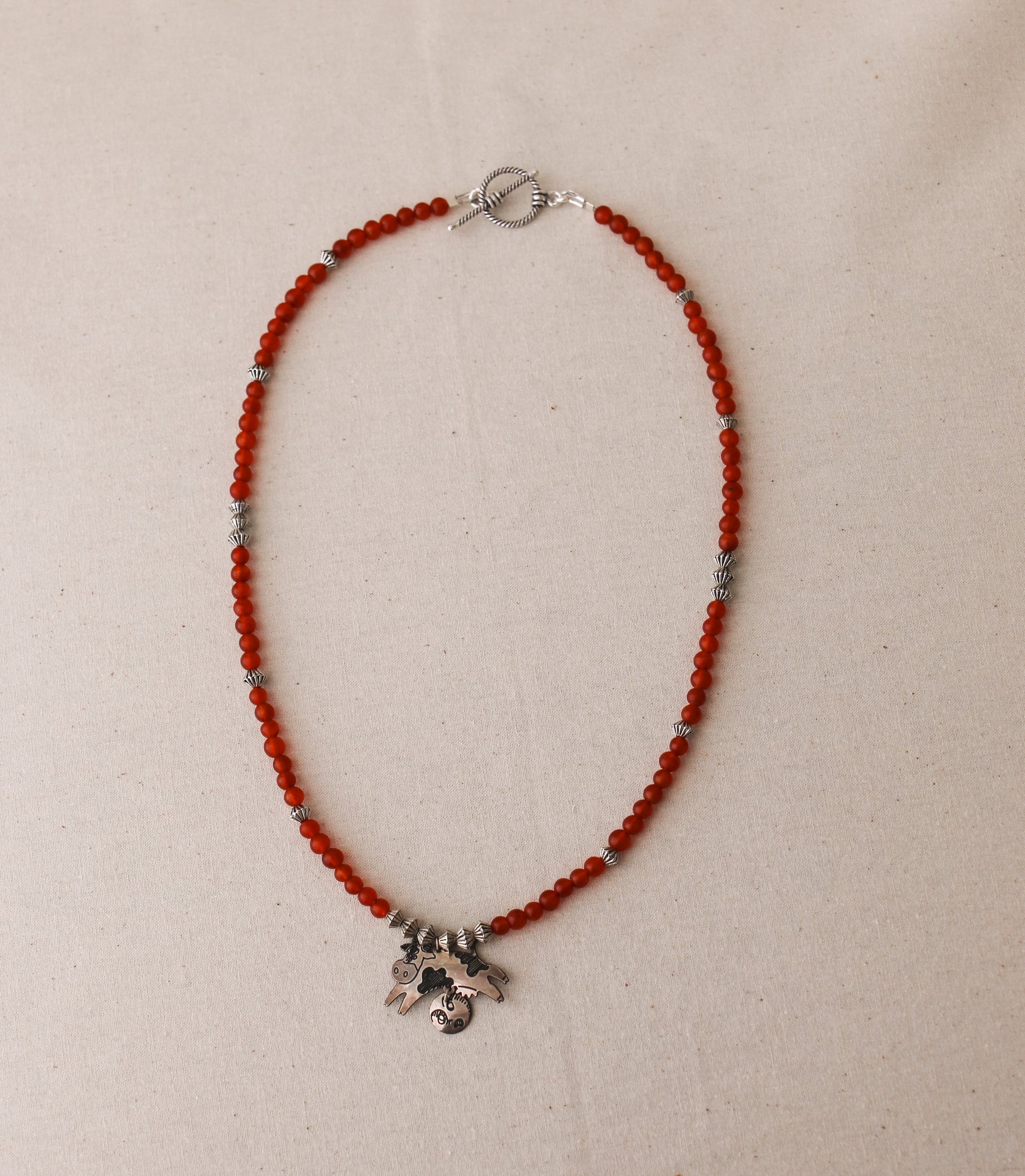 Vintage Sterling Silver Cow and Moon Pendant